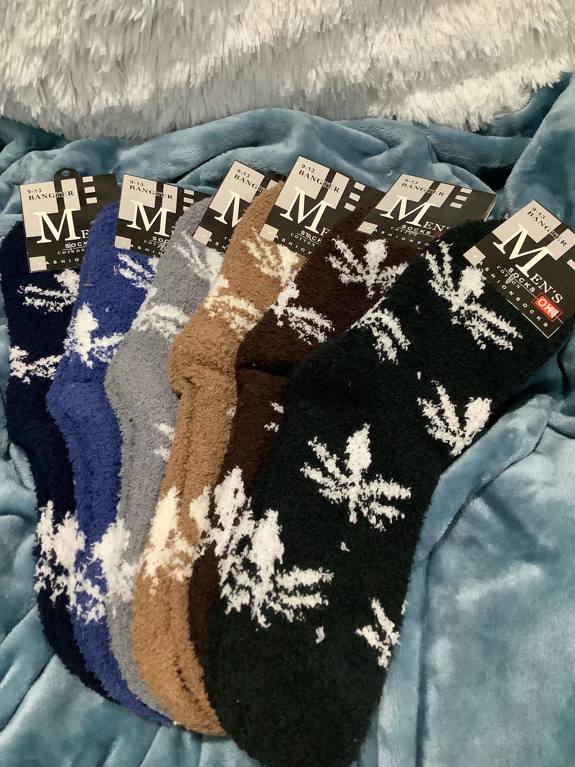*6 Pairs 420 Leaf Fuzzy Sock BEST FITS 9-10 *Navy *Blue *Gray *Brown *Chocolate *Black
