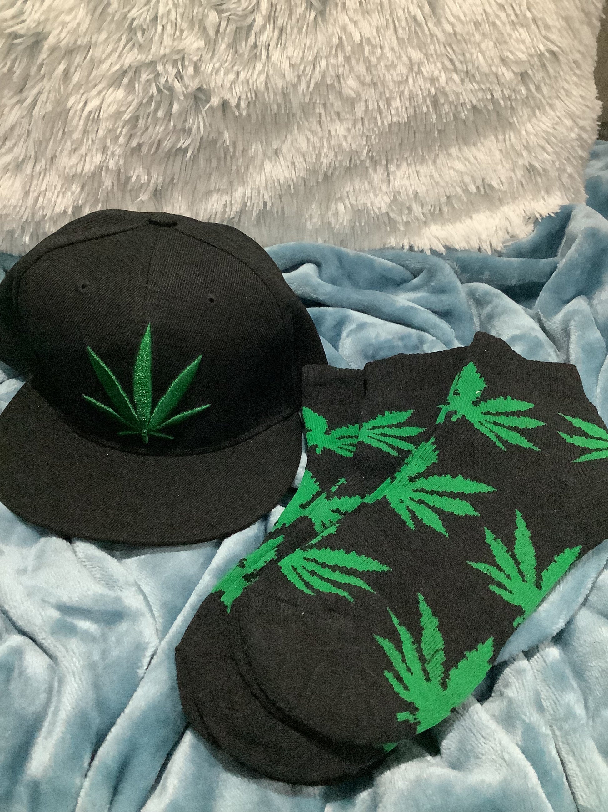 *420 Leaf Snapback Hat with matching 3 Pairs of Thick Short Sock size 10-13