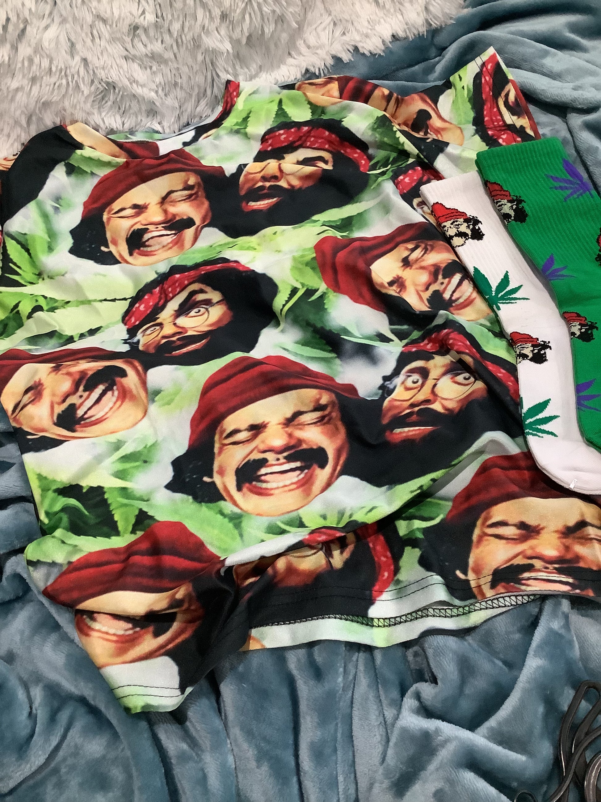 *Cheech & Chong Shirt Size Small/Medium Polyester Blend *2 Pairs of Cheech & Chong Crew Socks BEST FITS Size 7-9