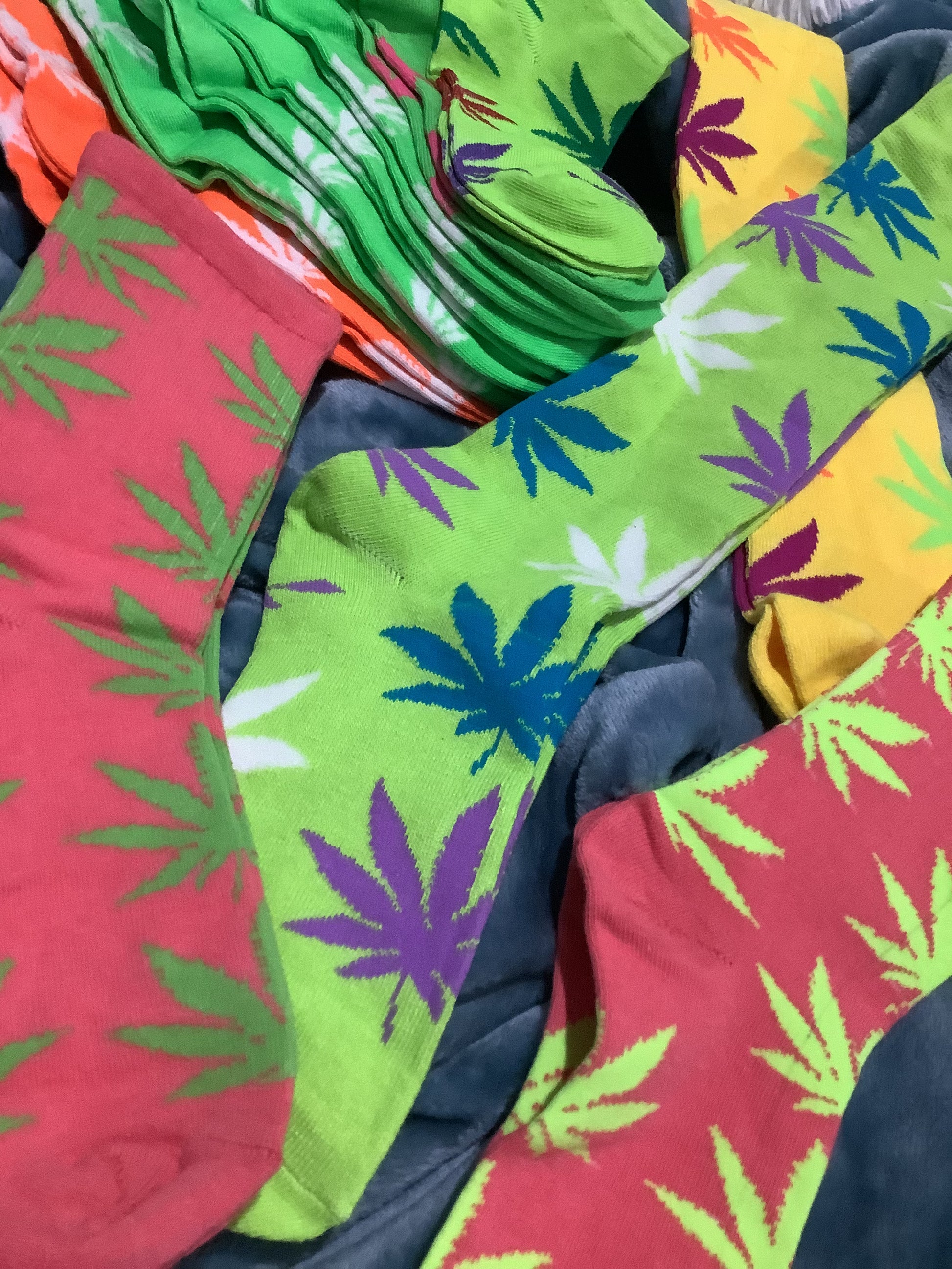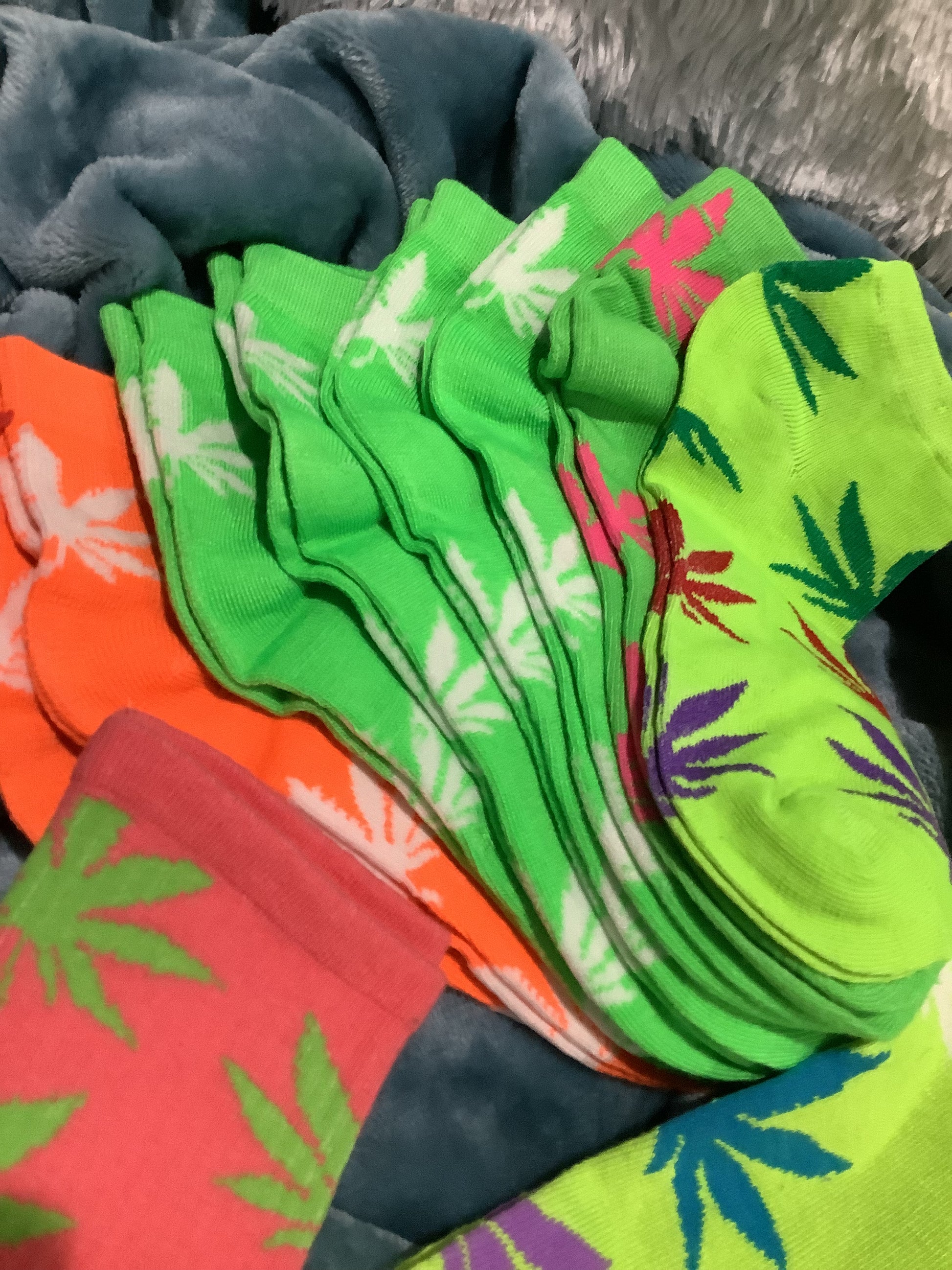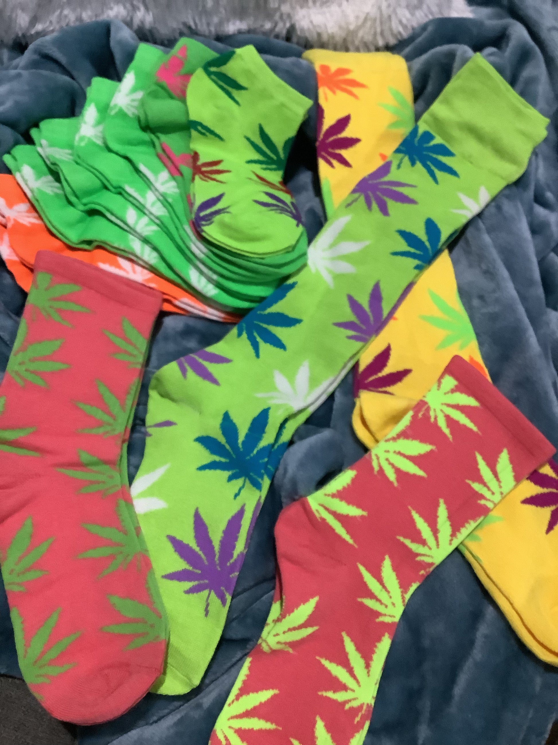 !2 Pairs of Mixed 420 Leaf Socks BEST FITS size 5-6 *2 Pairs Crew Socks: Lime Green Multicolored and Yellow Multicolored *2 Pairs of Knee High Sock: Green/Pink and Yellow/Pink *8 Pairs of Short Cut: 2 Orange/white, 4 Green/White, 1 Green/pink, 1 Green multi