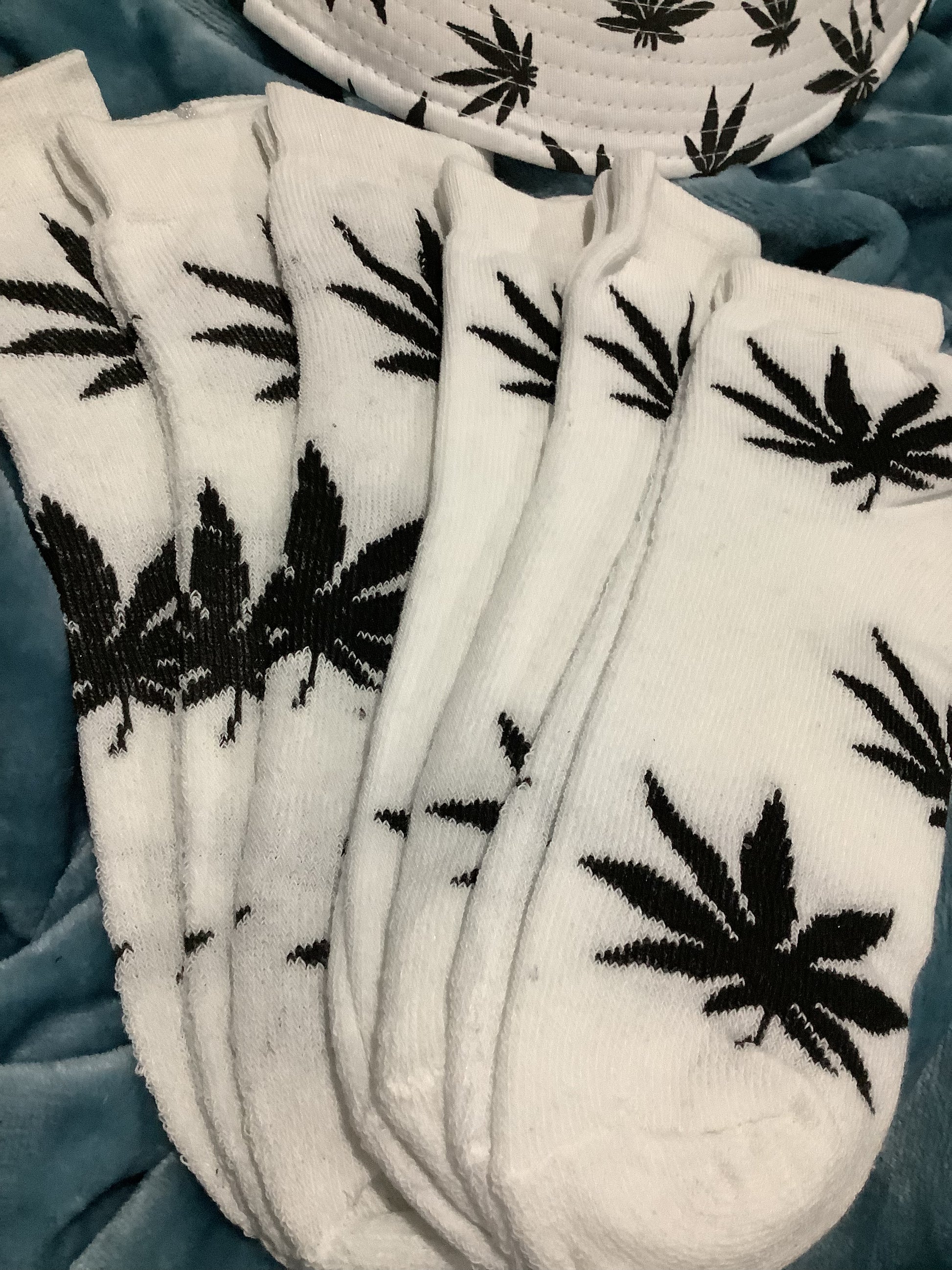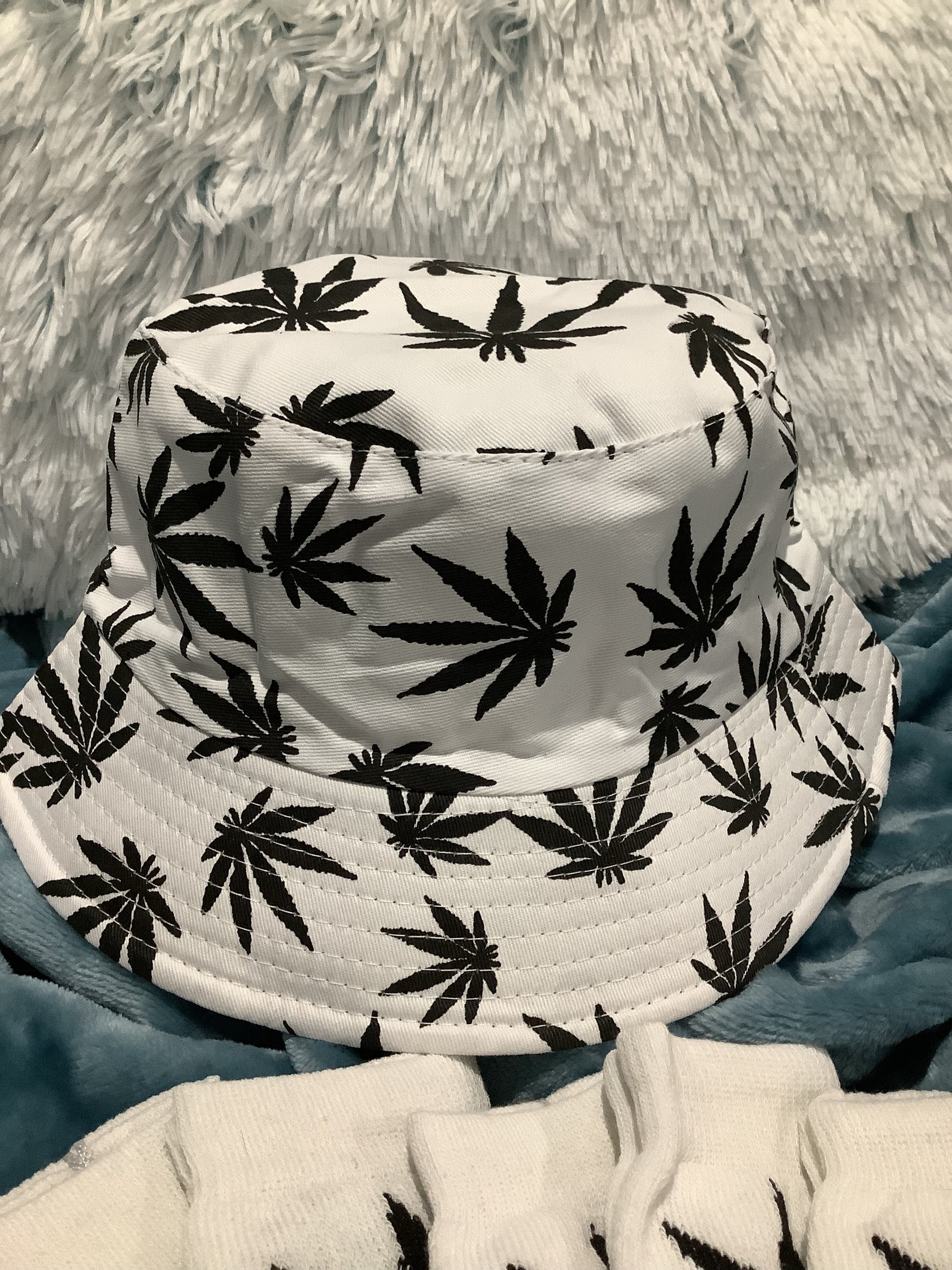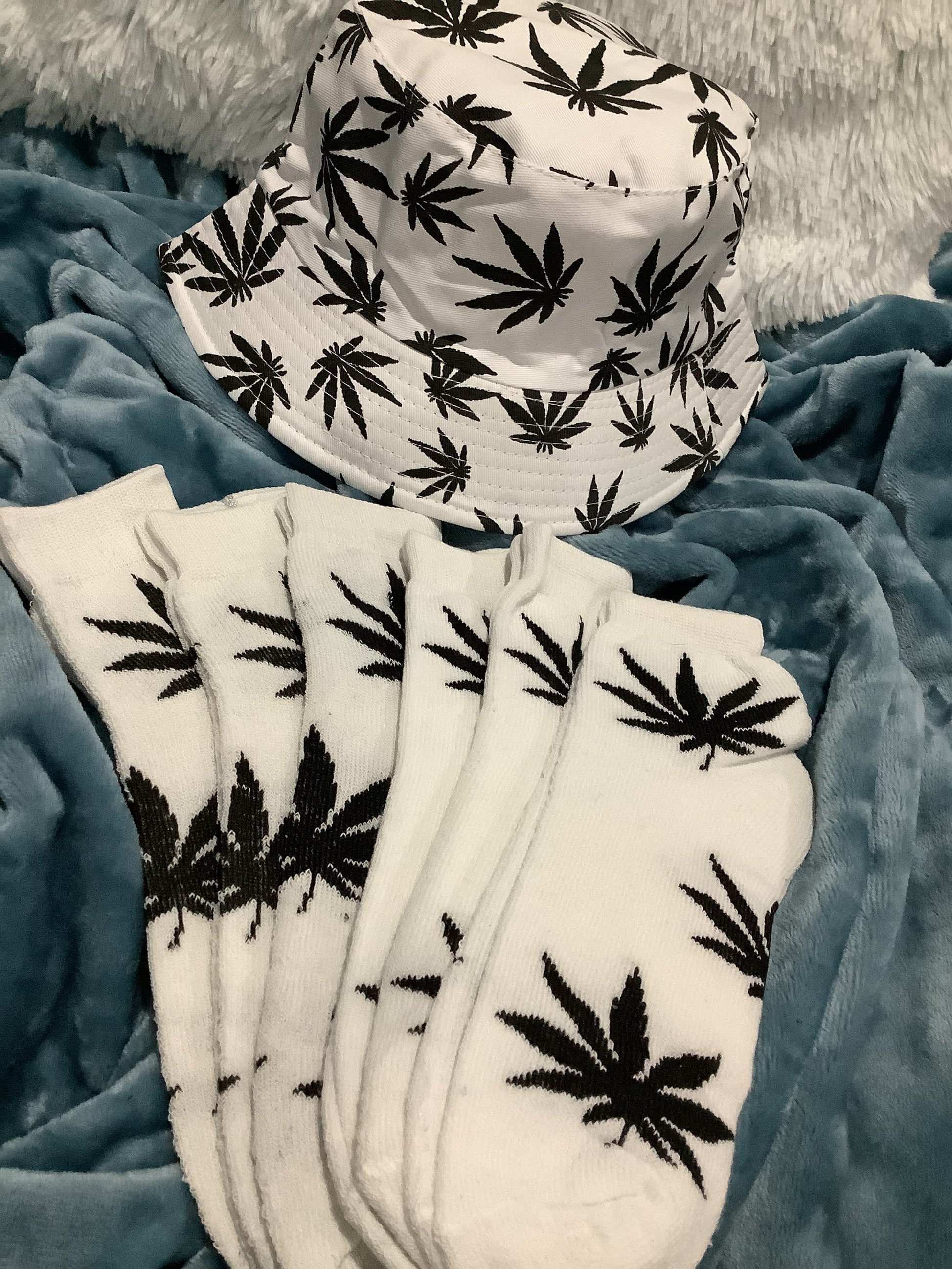 Black & White Bucket Hat with 6 Pairs of thick Crew Socks 10-13