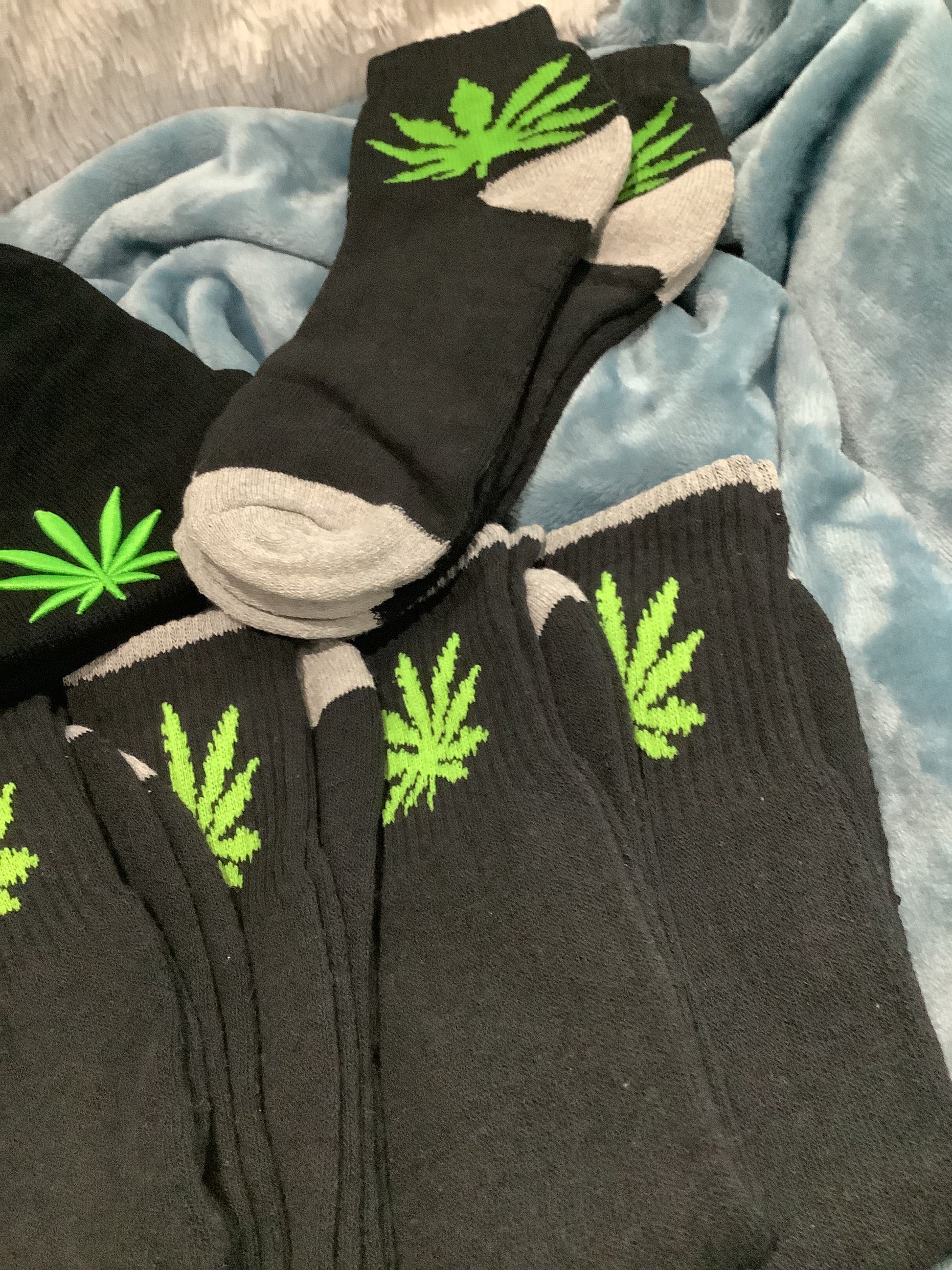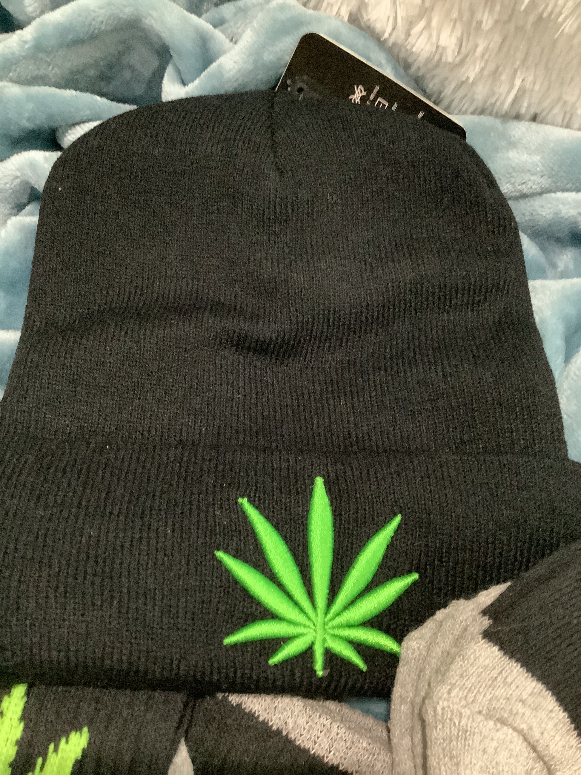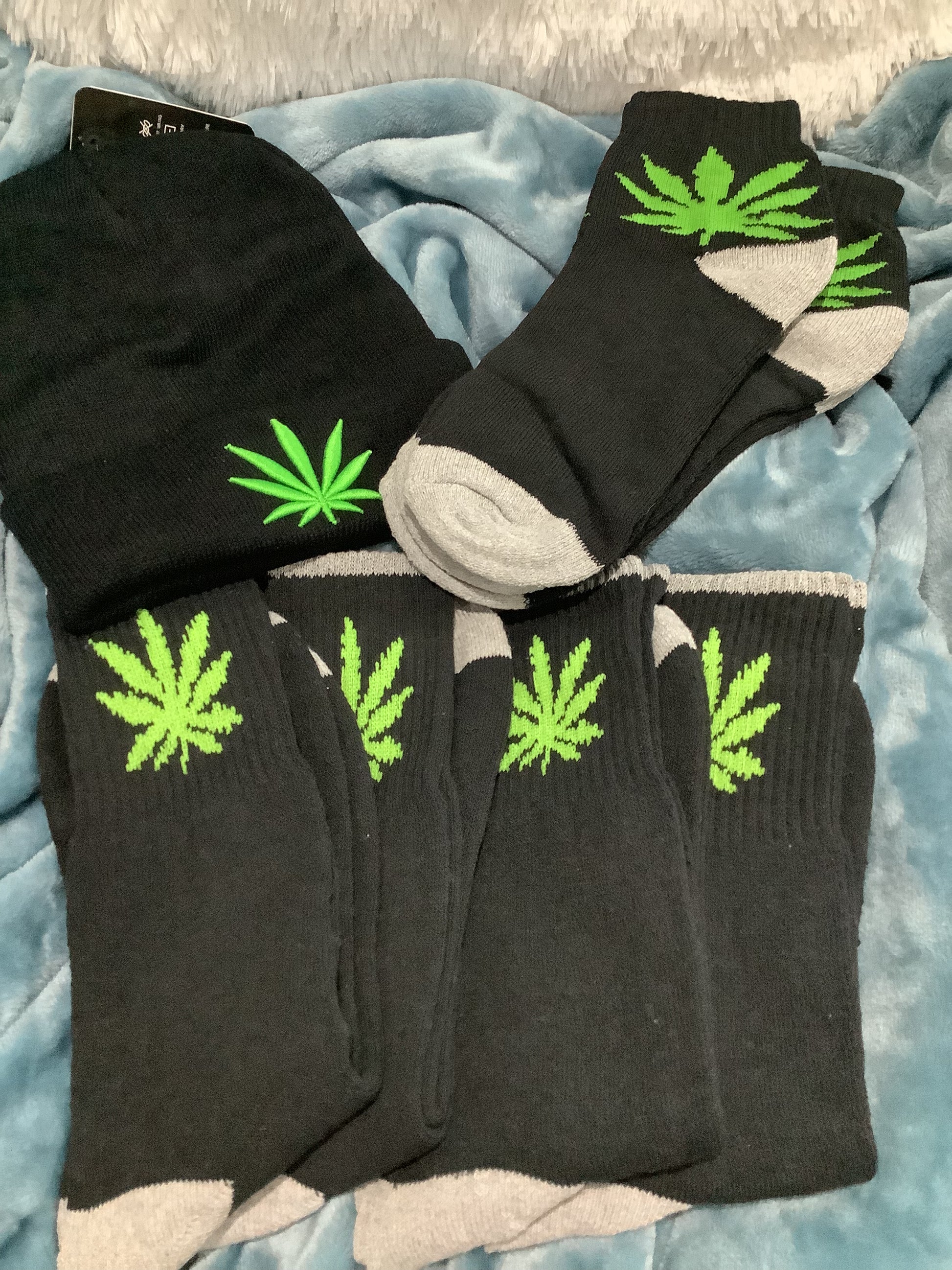 *Black and Green 420 leaf Beanie Hat *6 Pairs of socks: 2 Pairs Short thick & 4 Pairs Crew thick Size 10-13